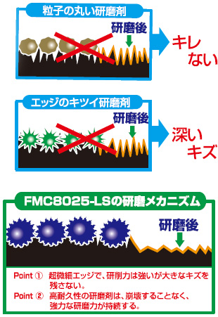 研磨剤粒子の粒子径・粒子形状を均一にすることにより、安定した仕上がり性能を実現!